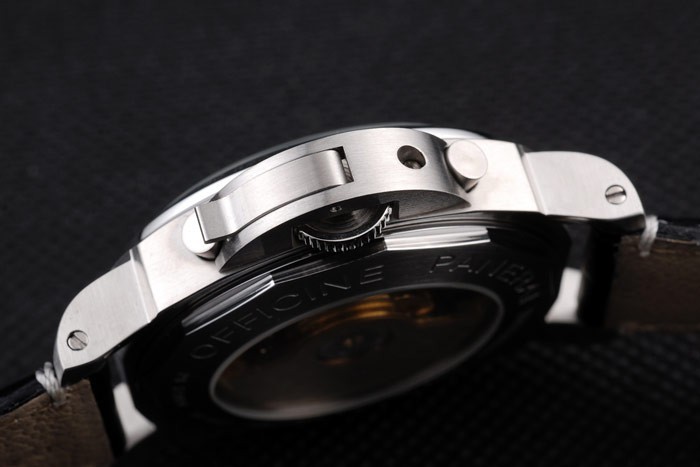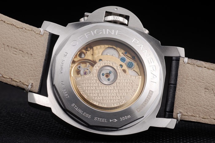 Denna klocka har AR glas. Ansiktet färg visas olika färger beroende på hur ljuset faller på itBack: borstat rostfritt stål snap-in tillbaka med Officine Panerai engraving
