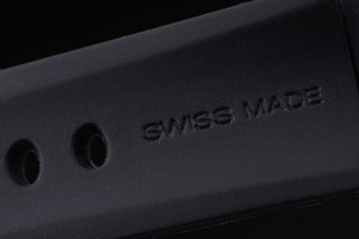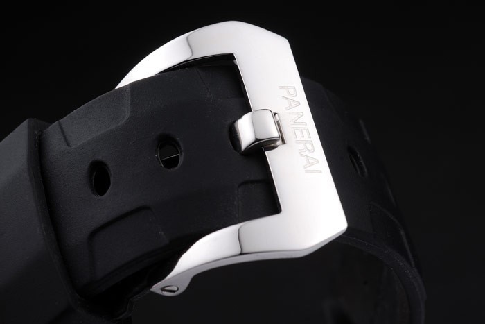 Bracelet stål: Svart gummiband med värme präglade Officine Panerai rem och borstat rostfritt stål utfällbar i krok clasp