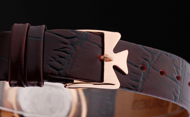 Bracelet: Rich rödbrun krokodil läderrem med ”Vacheron Constantin” inskription och krok spänne clasp