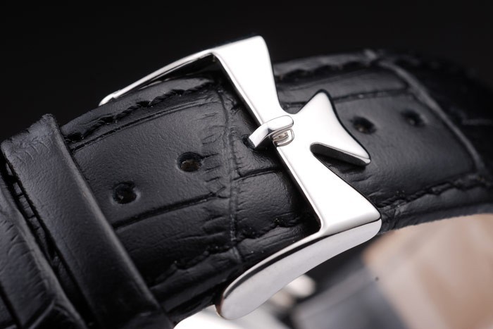 Bracelet rostfritt stål: Svart krokodil läderrem med värme präglade Vacheron Constantin stämpel och polerat rostfritt stål Vacheron Constantin logo krok-spänne clasp